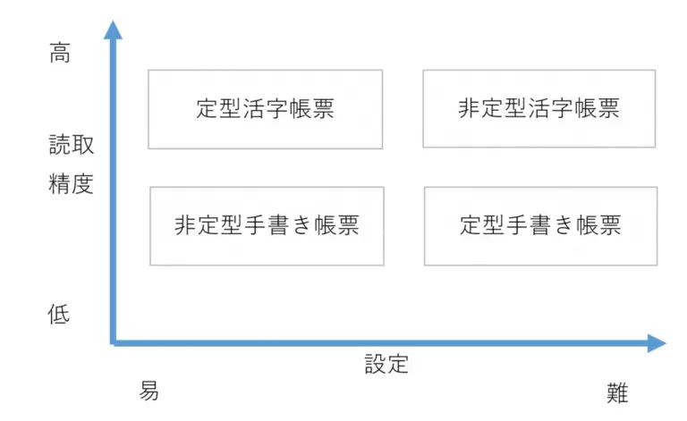 • 非定型より定型の方が設定が簡単です。非定型の場合、読み取り原稿のレイアウトがその時々で変更されることになりますので、定型の場合よりは高次な設定が必要になります。